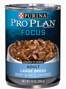 4. Purina Pro Plan Focus Adult Large Breed Beef & Rice Entree Chunks in Gravy Canned Dog Food